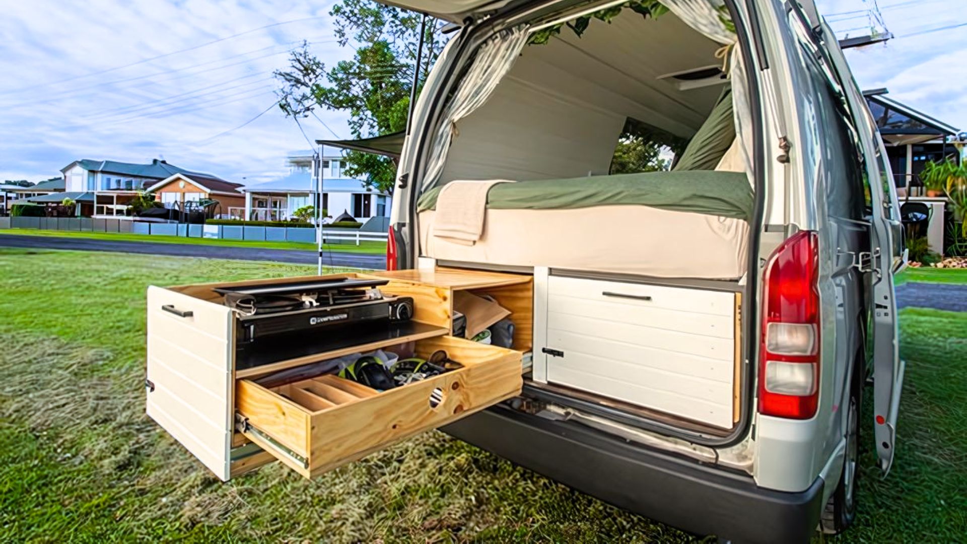 Cargo Space: The Toyota Hiace Campervan provides generous cargo space, ideal for storing camping gear, equipment, and supplies for long trips.