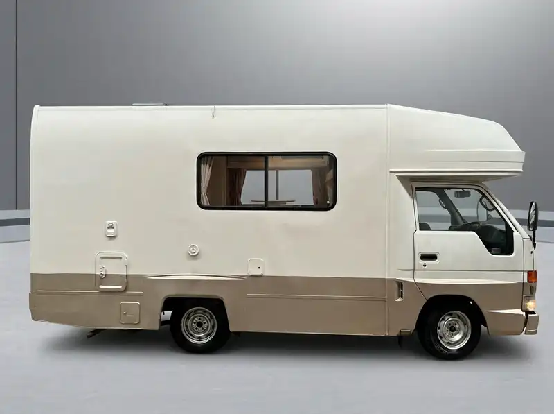 The 1996 Toyota Hiace Diesel features a White exterior and GREY interior. This Motorhome is built for drivers seeking efficiency, comfort, and power. A reliable 2.8 L 4-stroke, water-cooled diesel engine (Engine Code: 3L, Model Code: LY111) with 67 kW of power and 188 Nm of torque can be found under the hood. 2WD and a Automatic make the car easy and smooth. This vehicle boasts a fuel efficiency of just , providing a great mix of power and economic savings. There are lots of features inside the car that are meant to make driving better. Key features include Air Conditioning, Power Windows, Power steering, Windshield wiper, Reversing Camera etc. This car's mileage has been checked to be 37,073 KM.